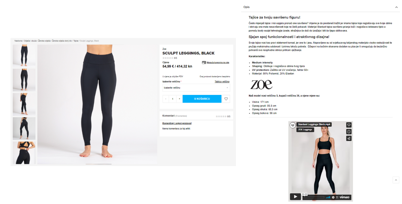 Pogledajte kako je Polleo sport napisao opis proizvoda za naizgled obične crne sportske tajice: